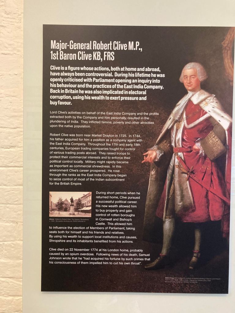 After some months, having from the start done everything to silence, prevaricate and ignore the problem of having a colonial warlord in the pride of place in the town square, Shropshire Council changed their Option 1 to Option 3 and drafted an interpretation panel to go next to the statue and another for the museum with the most minimalist description of Clive’s legacy of violence. We corrected that draft to a more honest biography of Robert Clive. It was a success for our organisation and our network.